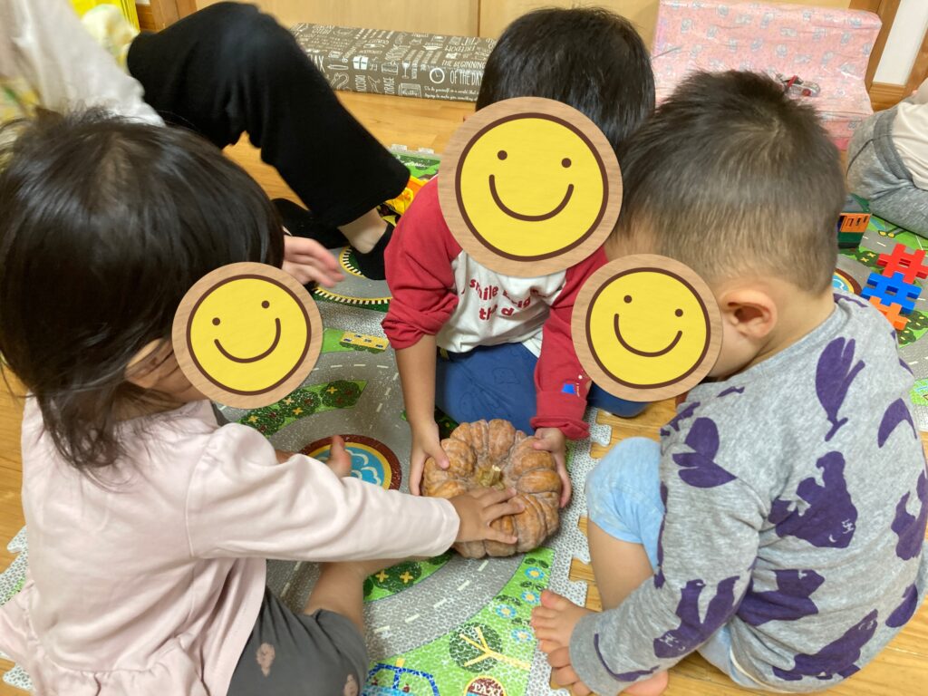 と伝えると、「かわいいね」「ハロウィンだね」とお話をして交流を楽しむ子どもたちでした☆