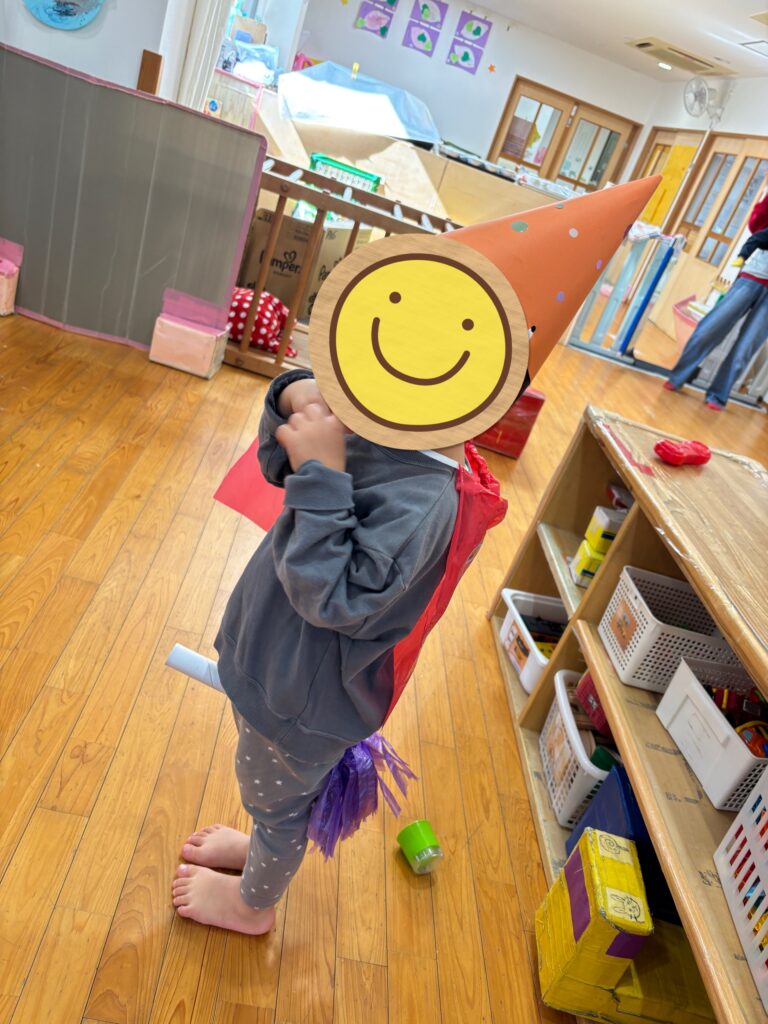 保育園に帰ってくると、ほうきにまたがって魔女の真似っこをしていましたよ。楽しいハロウィンパーティーになりました!